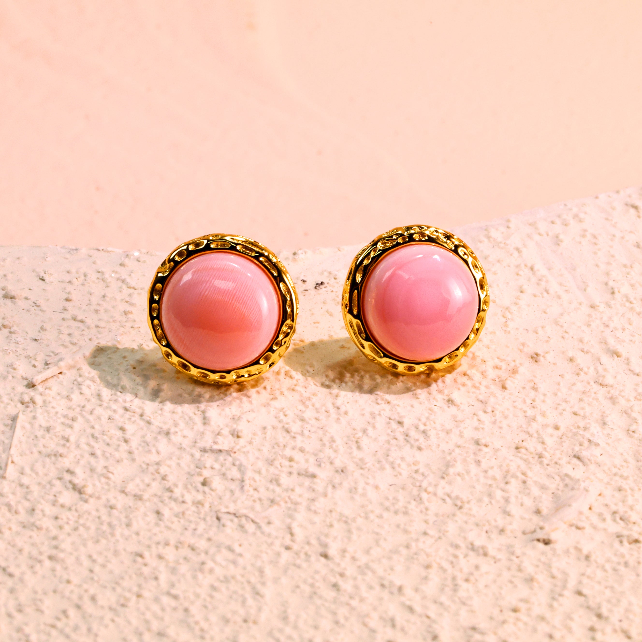 シンプルで上品な輝き—ラウンド型女王貝スタッドピアス