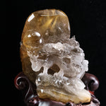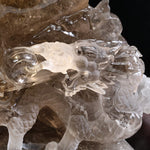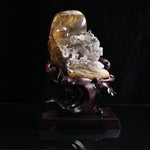 このルチルクォーツ原石を使った龍遊珠の風水置物は、石の自然な形状を最大限に活かし、職人の手によって丁寧に彫刻された芸術作品です。原石そのものが持つ美しい輝きと繊細なルチルクォーツの模様が、龍と珠のデザインをさらに際立たせています。