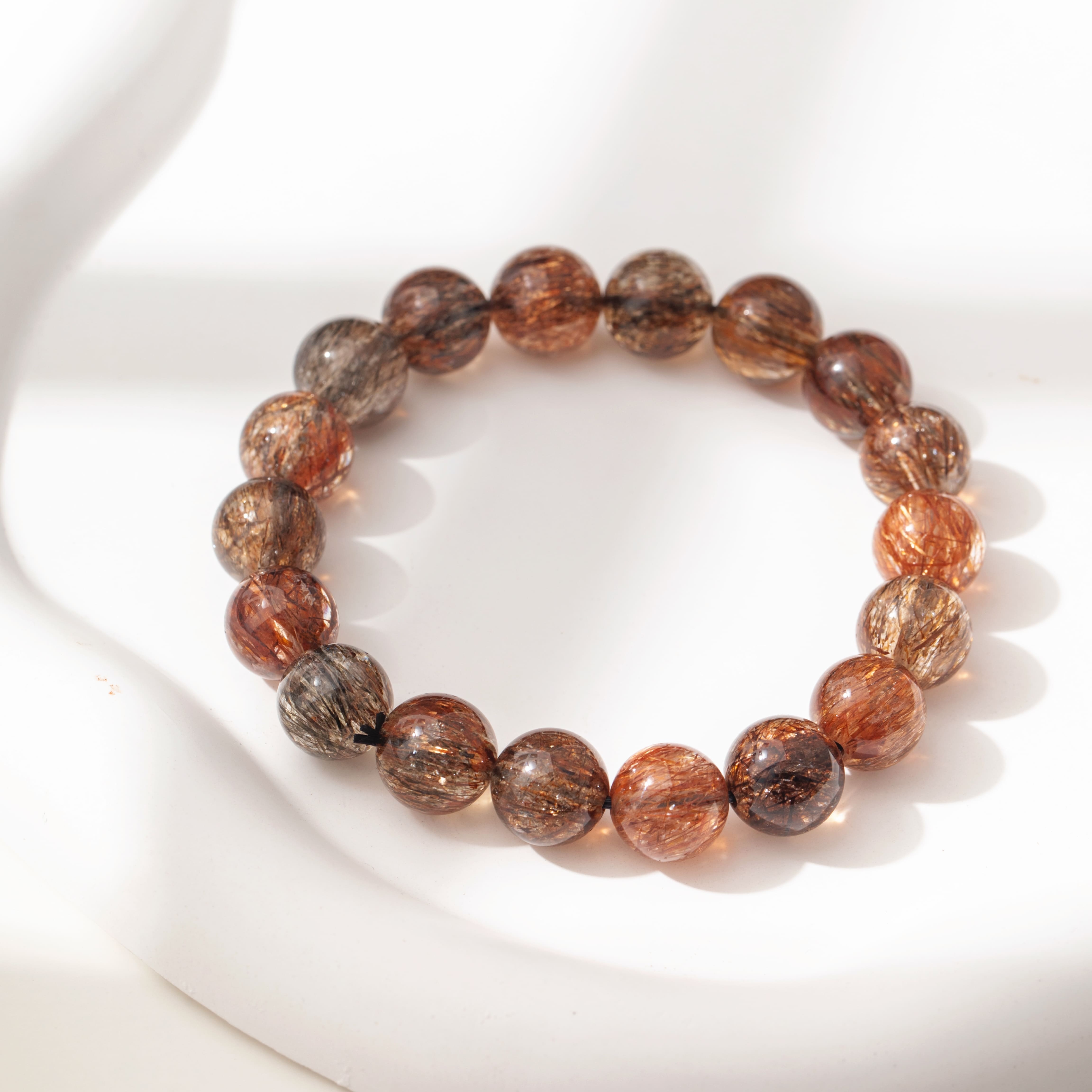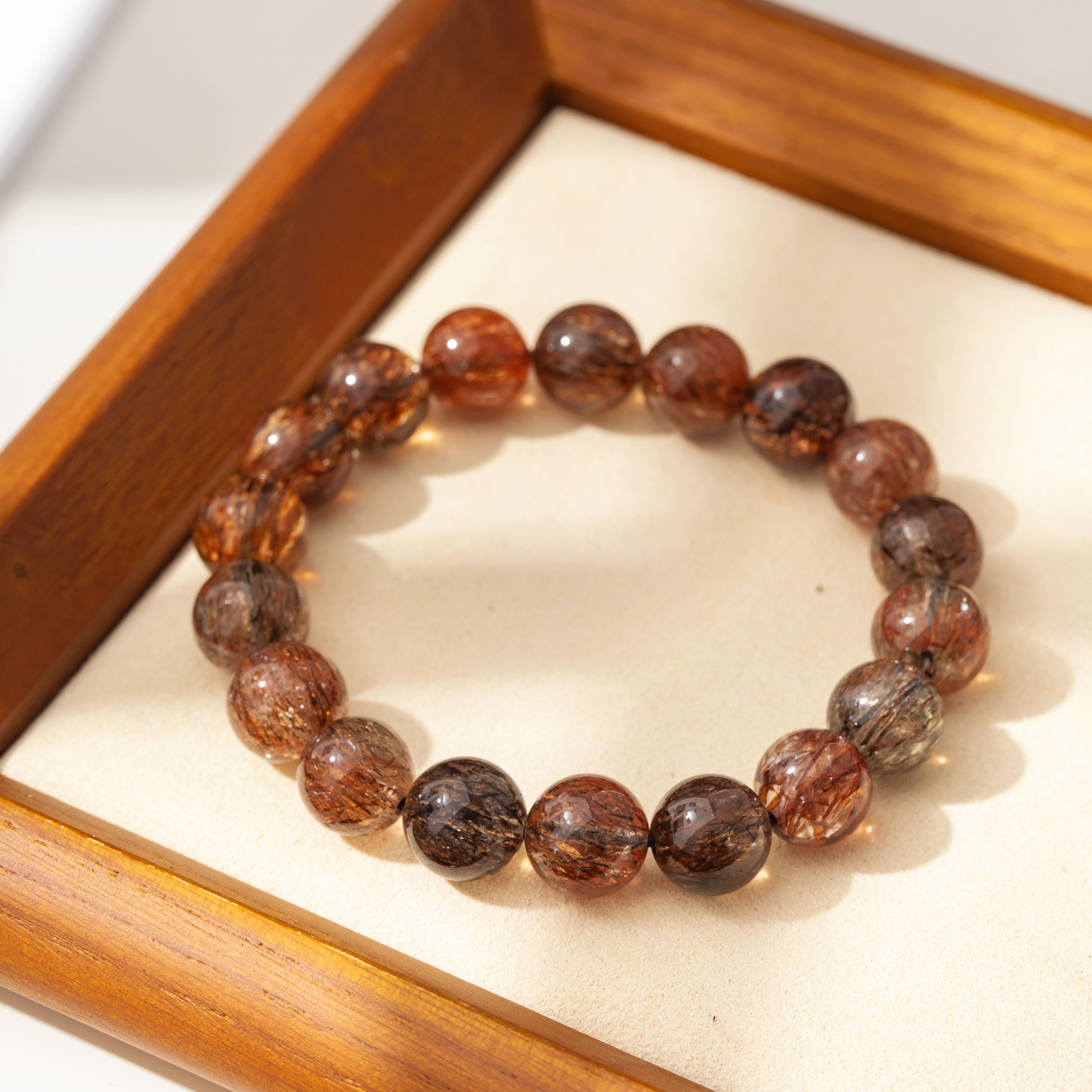 自然とエネルギーが完璧に融合したブラックゴールドスーパークリスタルブレスレット。厳選された高品質のスーパークリスタルが、一粒一粒丁寧に選ばれ、黒と金の豊かな色彩が繊細に織りなすデザインを実現しています。このブレスレットに使用されているスーパークリスタルは、その独特な色合いと輝きが、まるで夜空に輝く星々や高貴な宝石のように、視覚と心に深い魅力と喜びをもたらします。