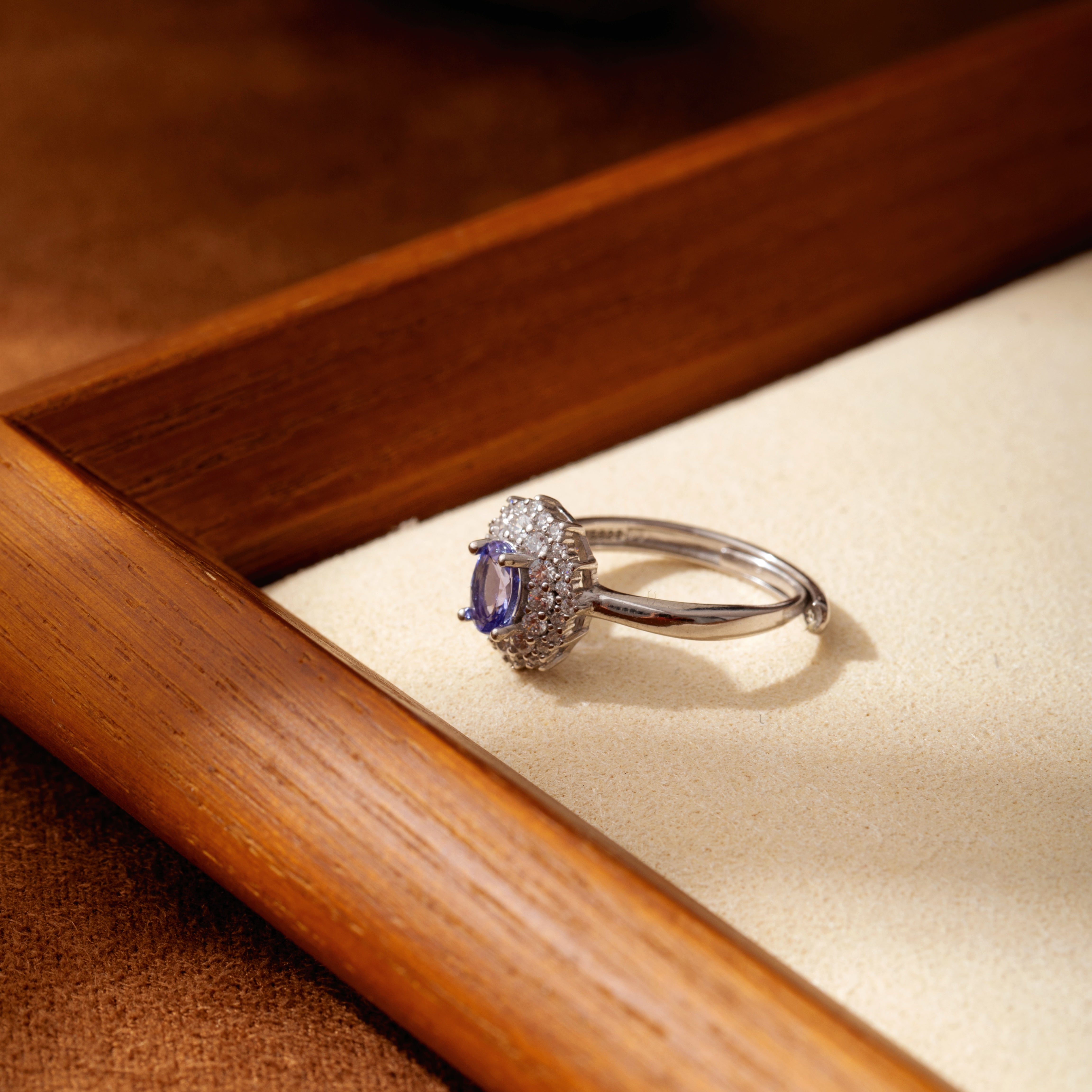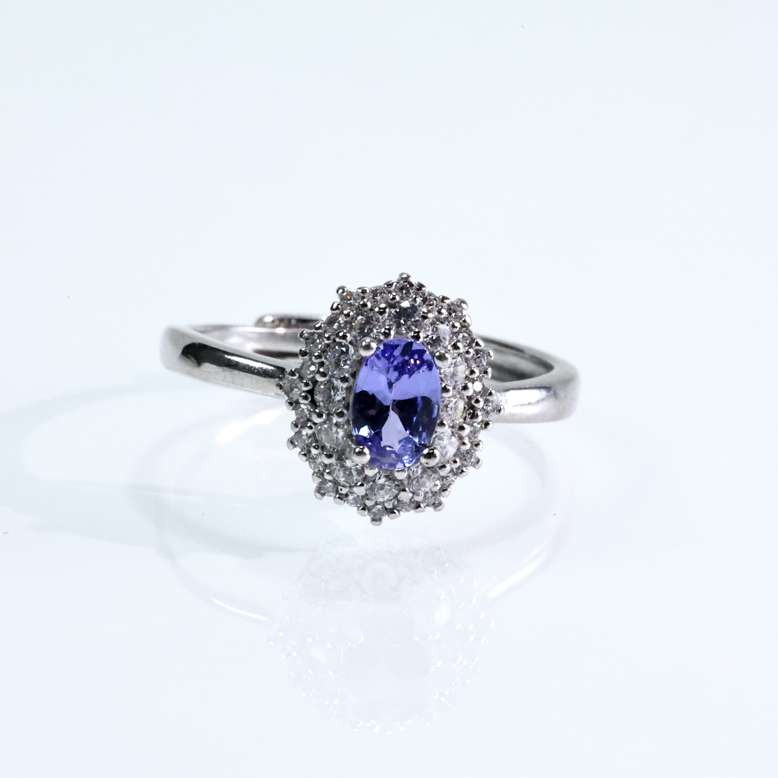 優雅に輝く—ダイヤ付き埋め込み型オーバルタンザナイトリング