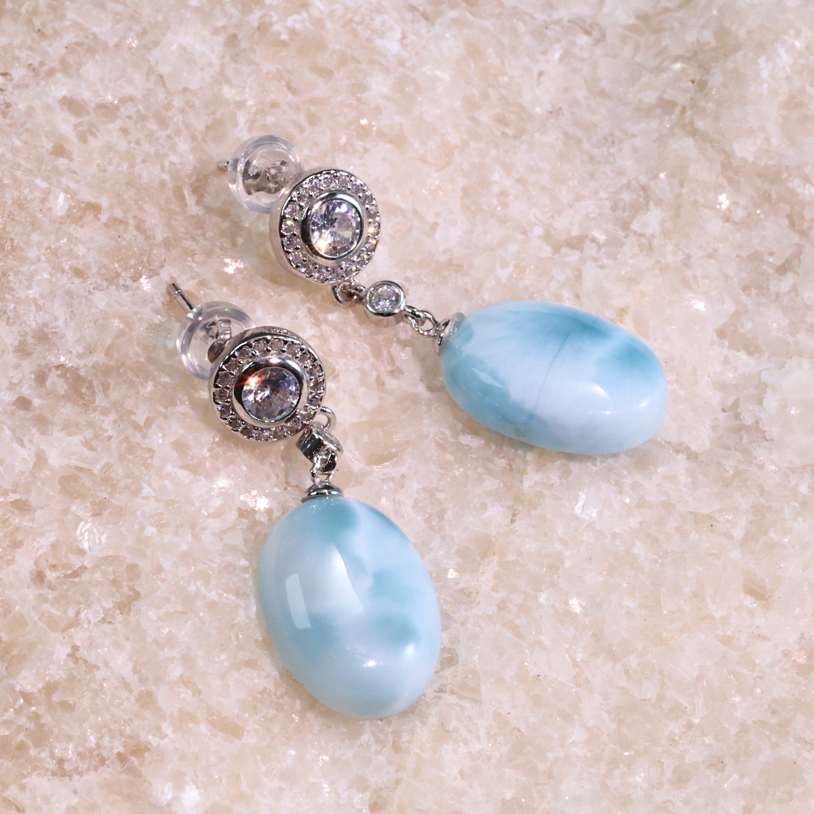 ラリマーの癒しのエネルギーとダイヤの華やかさを兼ね備えたこのピアスは、特別な瞬間をさらに輝かせてくれるアイテムです。ぜひ、耳元に洗練された輝きを添えてみてください。