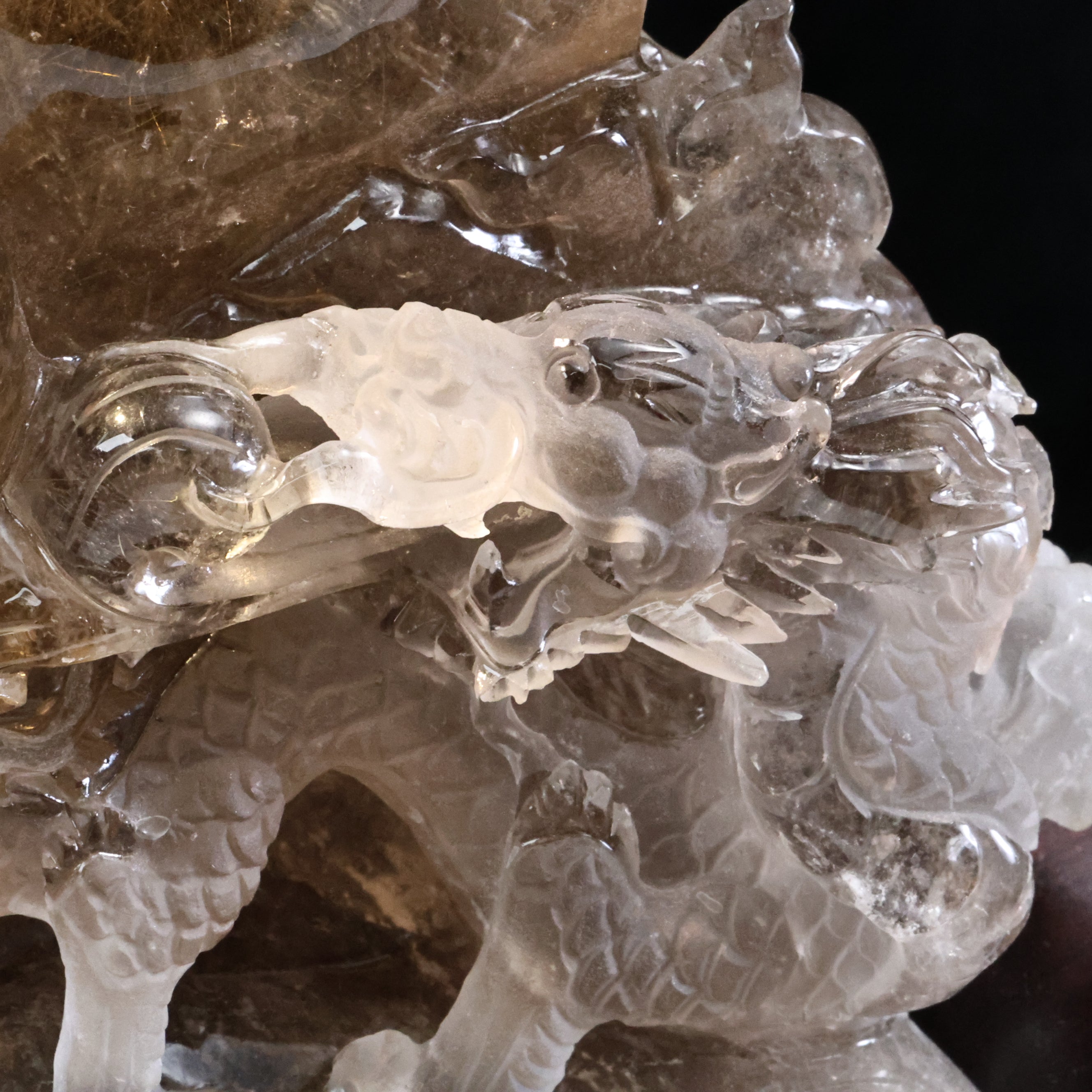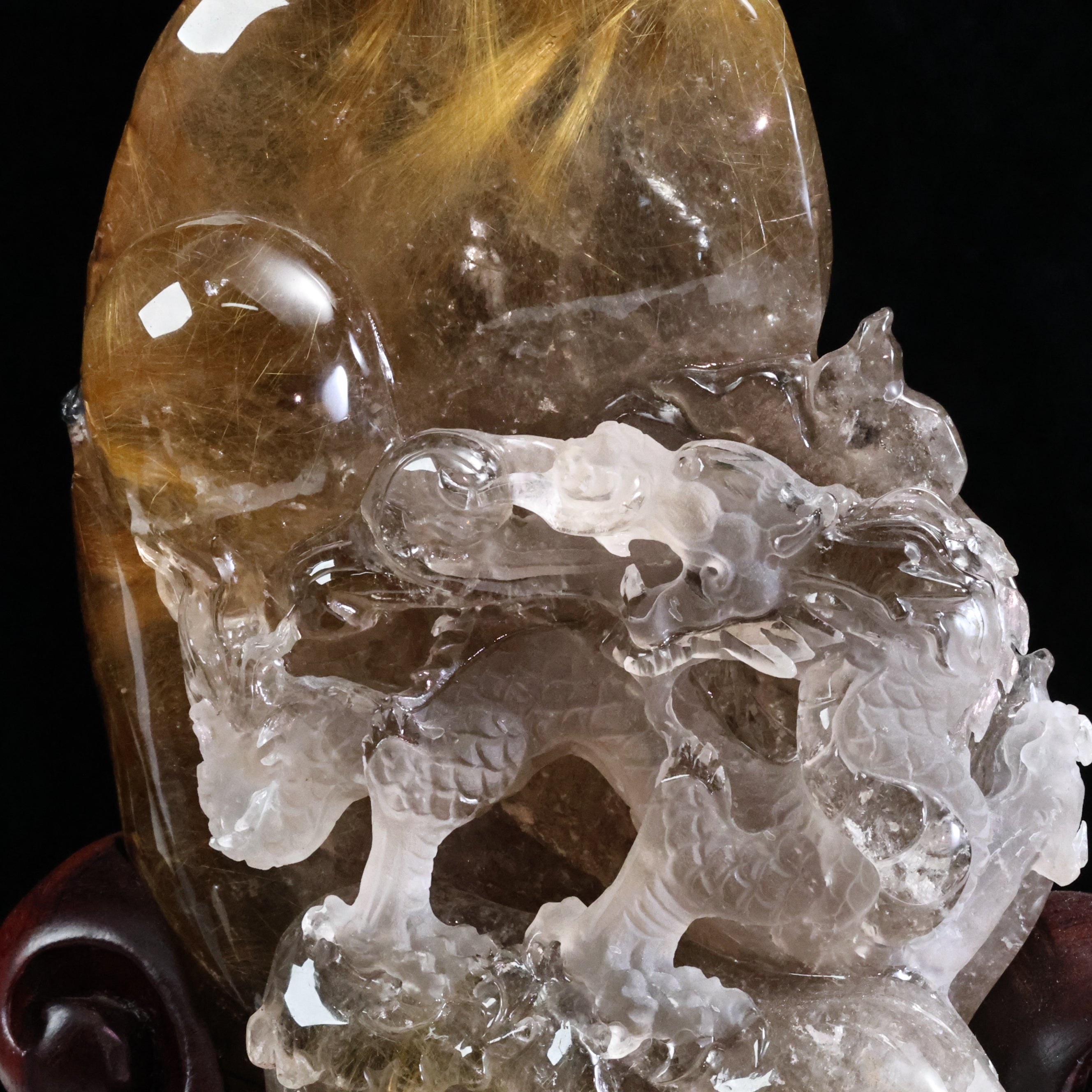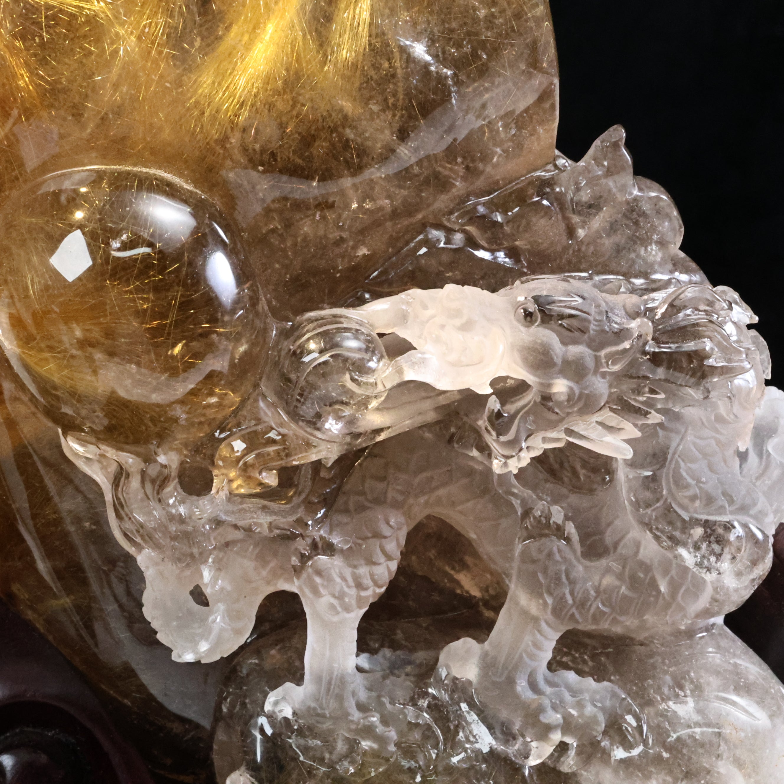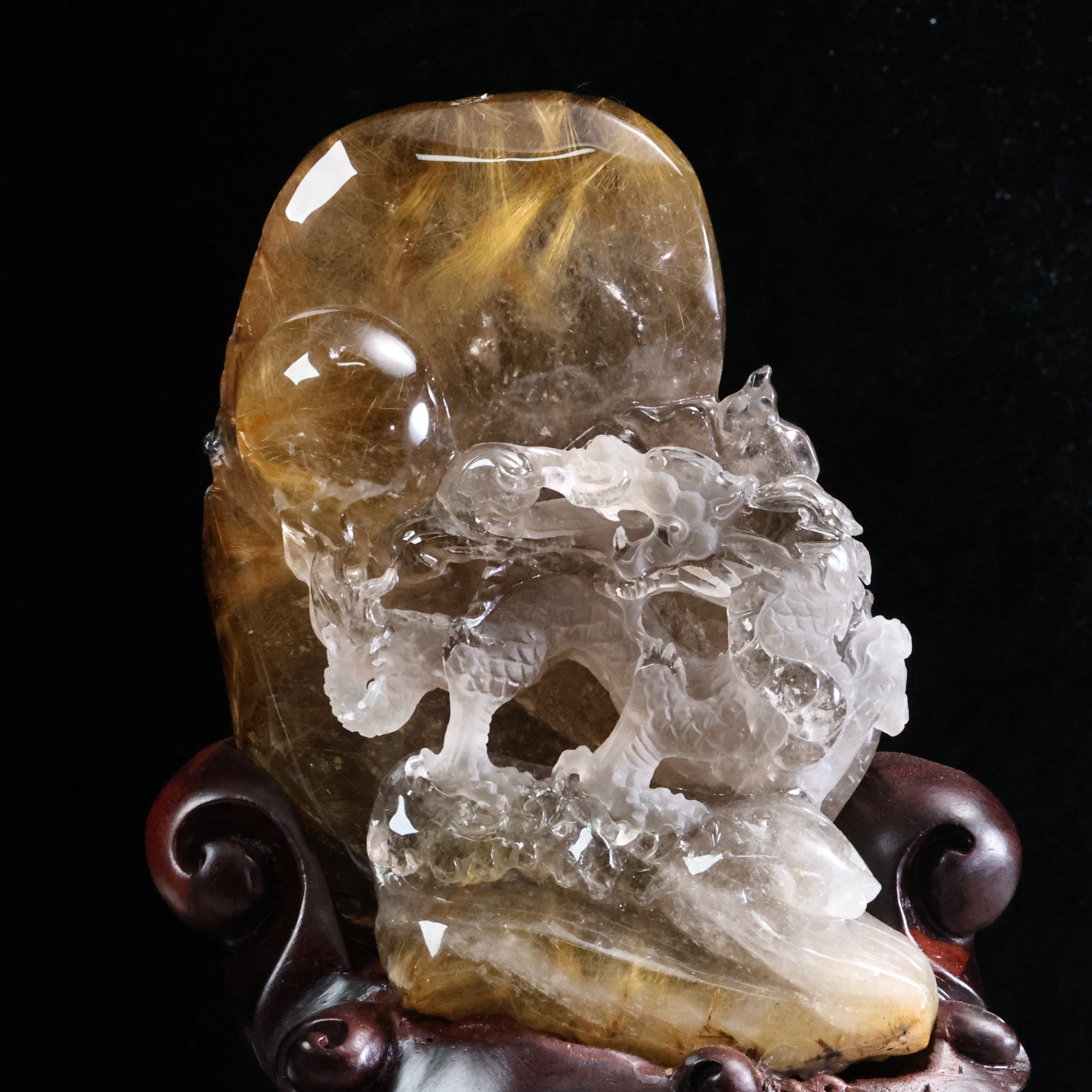 職人技が生み出した自然美—ルチルクォーツ原石の龍遊珠風水置物