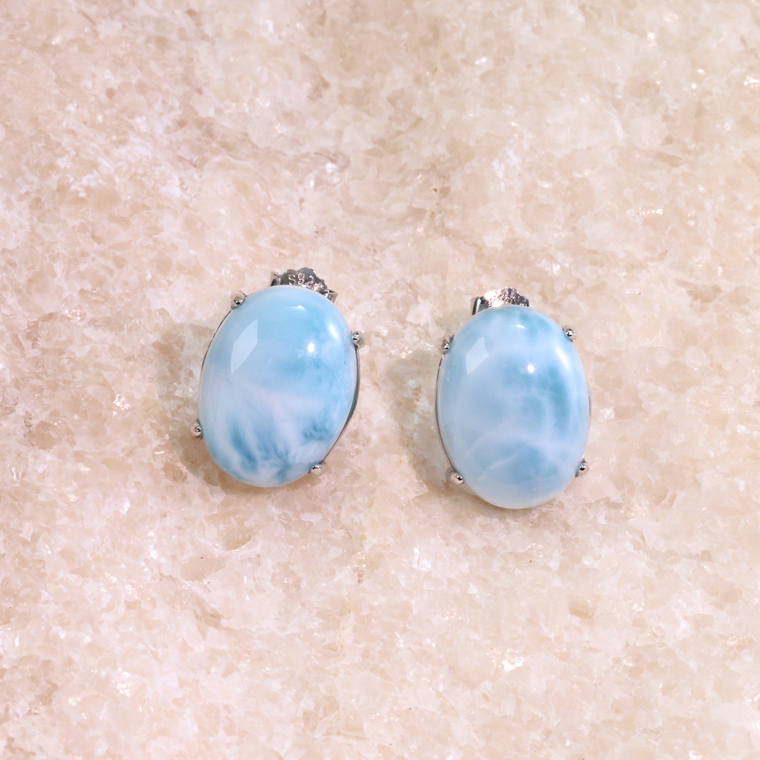 このラリマースタッドピアスは、まるで大自然がキャンバスに描いたアート作品のような美しさを持っています。海の波や空のグラデーションを思わせるラリマーの模様は、一点一点異なり、それぞれが唯一無二の存在感を放ちます。耳元に小さな絵画を身につけているような感覚を楽しめる特別なアクセサリーです。